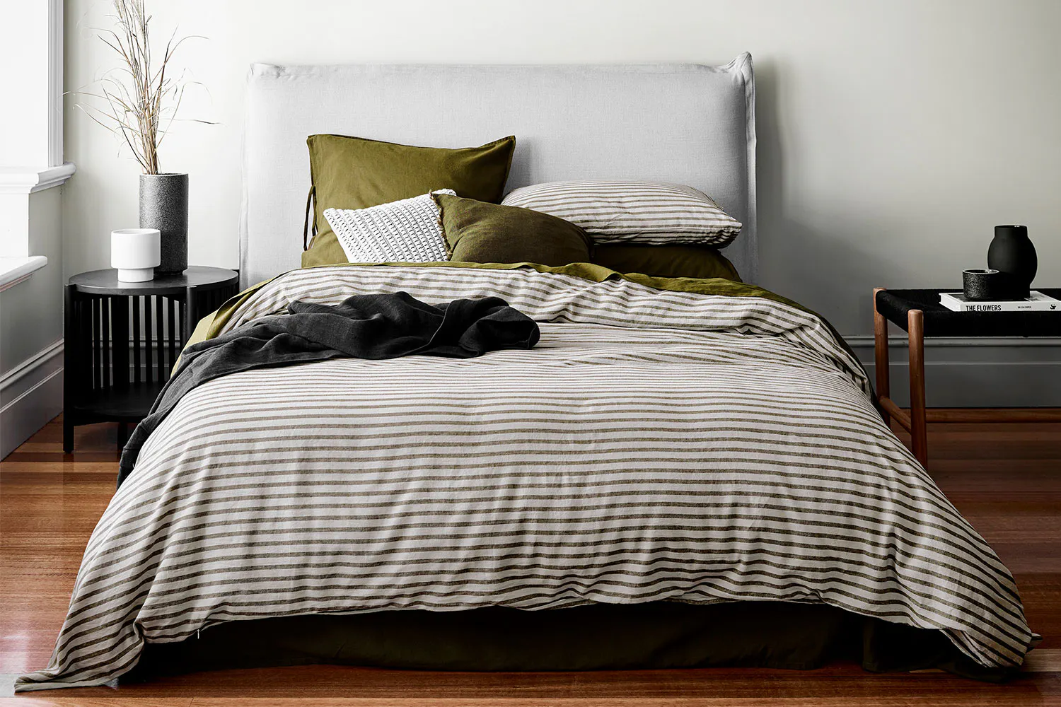 Heirloom Stripe Duvet Cover By Aura Khaki Harvey Norman New Zealand